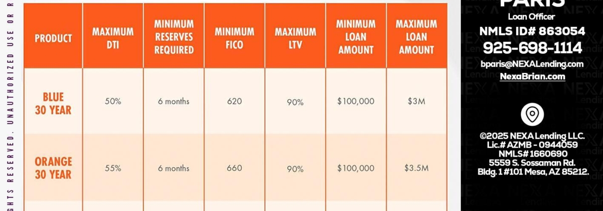 30 YEARS OPTIONS - Brian Paris -Loan OfficerHi, my name is Brian Paris. I’m a Loan Officer with NEXA Lending LLC., offering personalized mortgage solutions, fast customized quotes, great rates and service with integrity.