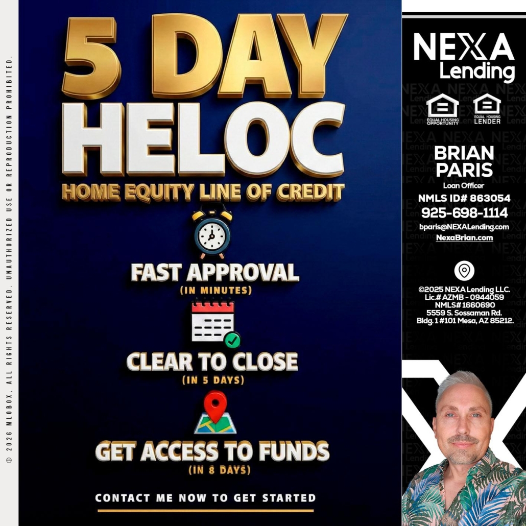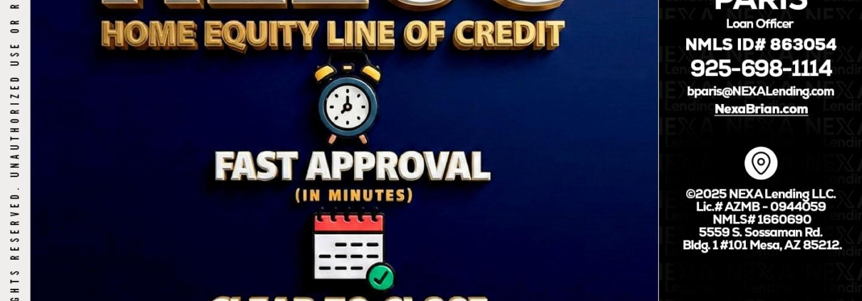 Hi, my name is Brian Paris. I’m a Loan Officer with NEXA Lending LLC., offering personalized mortgage solutions, fast customized quotes, great rates and service with integrity.