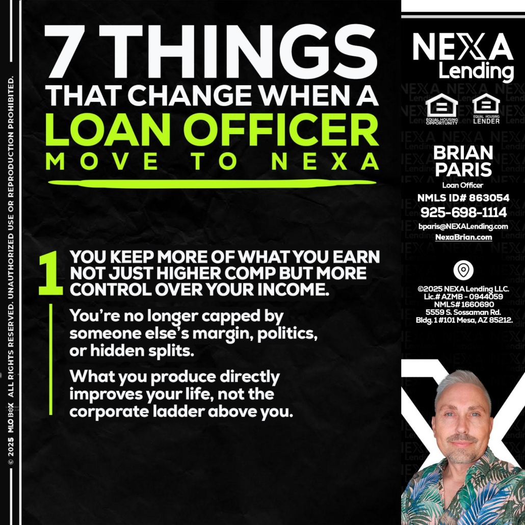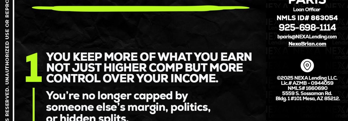 Hi, my name is Brian Paris. I’m a Loan Officer with NEXA Lending LLC., offering personalized mortgage solutions, fast customized quotes, great rates and service with integrity.