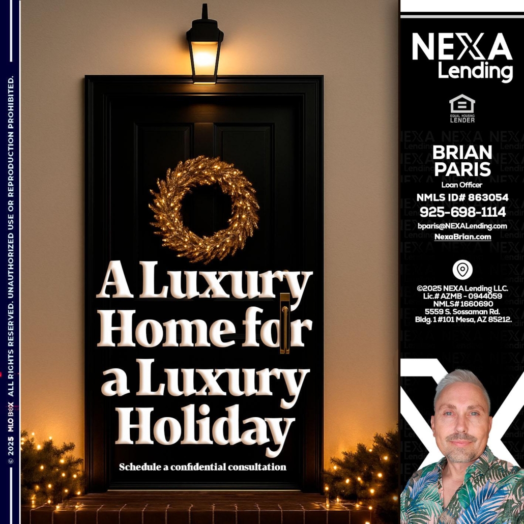 Hi, my name is Brian Paris. I’m a Loan Officer with NEXA Lending LLC., offering personalized mortgage solutions, fast customized quotes, great rates and service with integrity.