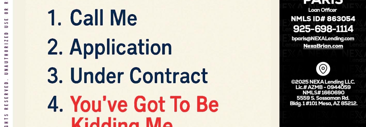 Hi, my name is Brian Paris. I’m a Loan Officer with NEXA Lending LLC., offering personalized mortgage solutions, fast customized quotes, great rates and service with integrity.