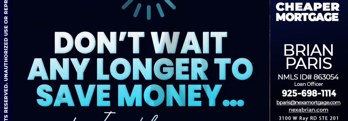 Hi, my name is Brian Paris. I’m a Loan Officer with NEXA Mortgage LLC., offering personalized mortgage solutions, fast customized quotes, great rates and service with integrity.
