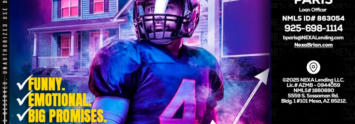 every Super Bowl - Brian Paris -Loan OfficerHi, my name is Brian Paris. I’m a Loan Officer with NEXA Lending LLC., offering personalized mortgage solutions, fast customized quotes, great rates and service with integrity.