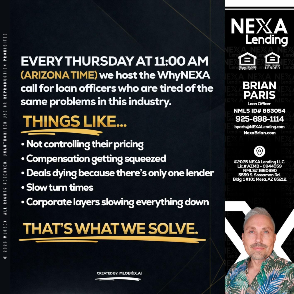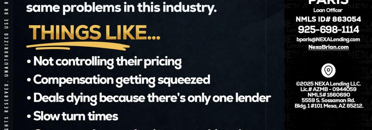 Hi, my name is Brian Paris. I’m a Loan Officer with NEXA Lending LLC., offering personalized mortgage solutions, fast customized quotes, great rates and service with integrity.