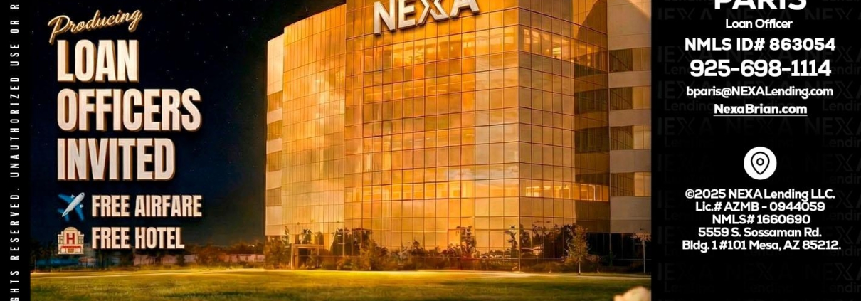 Hi, my name is Brian Paris. I’m a Loan Officer with NEXA Lending LLC., offering personalized mortgage solutions, fast customized quotes, great rates and service with integrity.