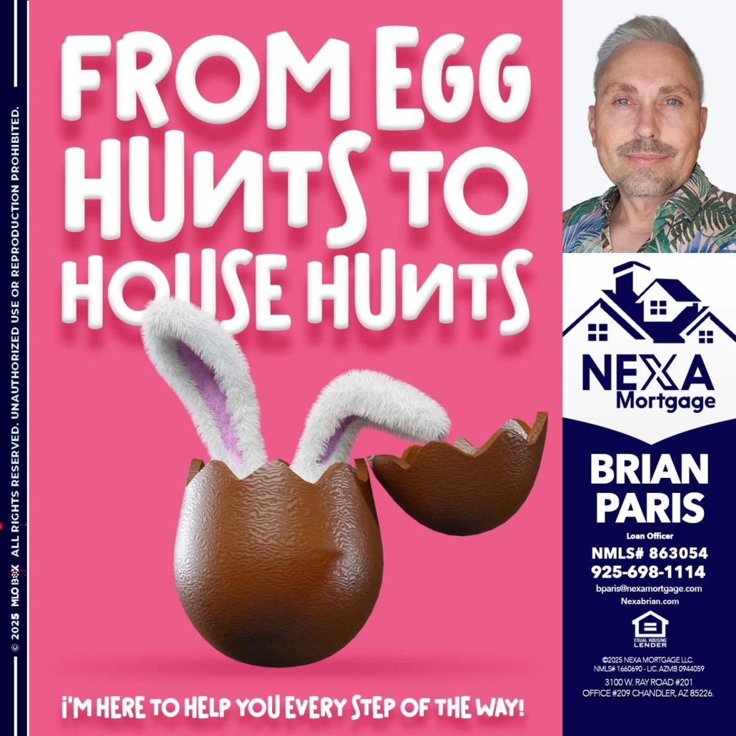 Hi, my name is Brian Paris. I’m a Loan Officer with NEXA Mortgage LLC., offering personalized mortgage solutions, fast customized quotes, great rates and service with integrity.