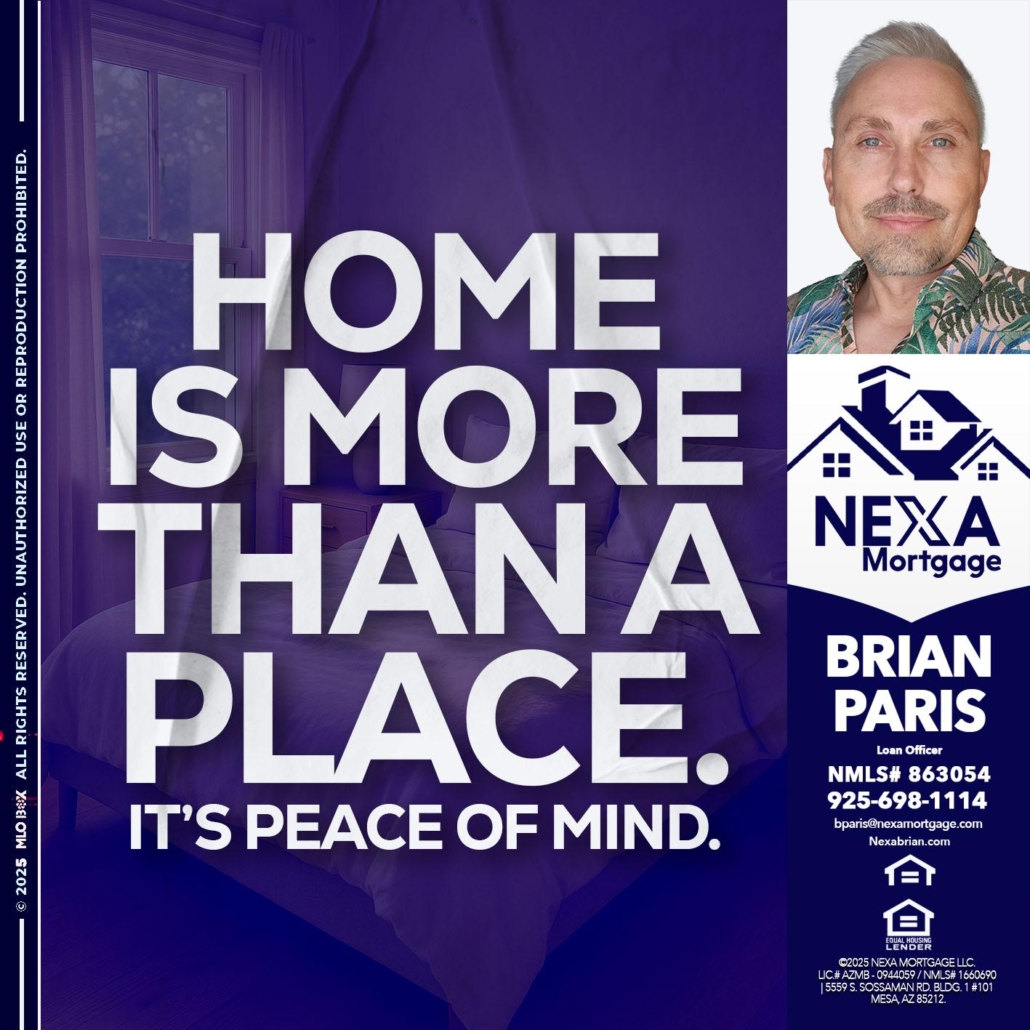 HOME IS MORE - Brian Paris -Loan OfficerHi, my name is Brian Paris. I’m a Loan Officer with NEXA Mortgage LLC., offering personalized mortgage solutions, fast customized quotes, great rates and service with integrity.