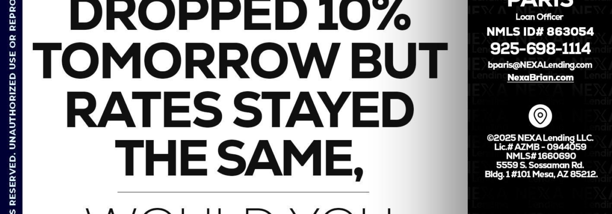 Hi, my name is Brian Paris. I’m a Loan Officer with NEXA Mortgage LLC., offering personalized mortgage solutions, fast customized quotes, great rates and service with integrity.