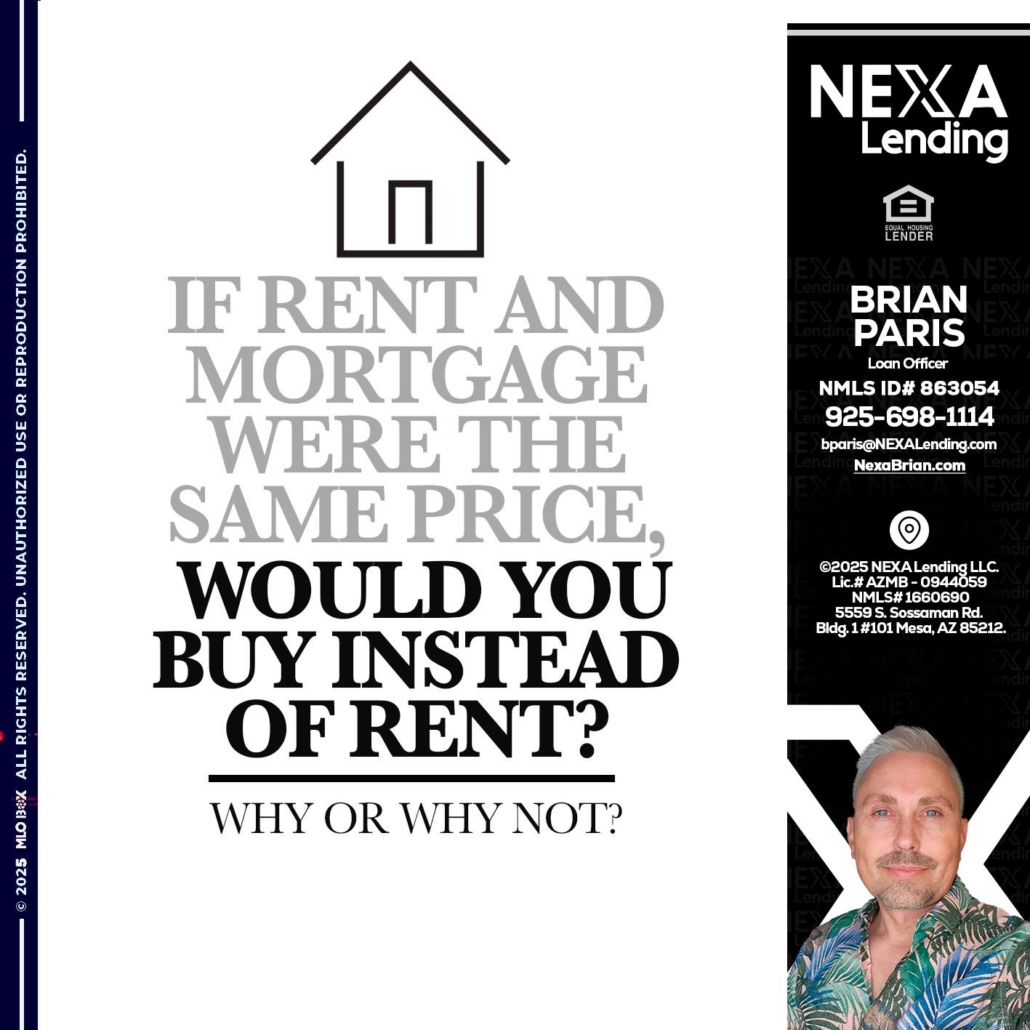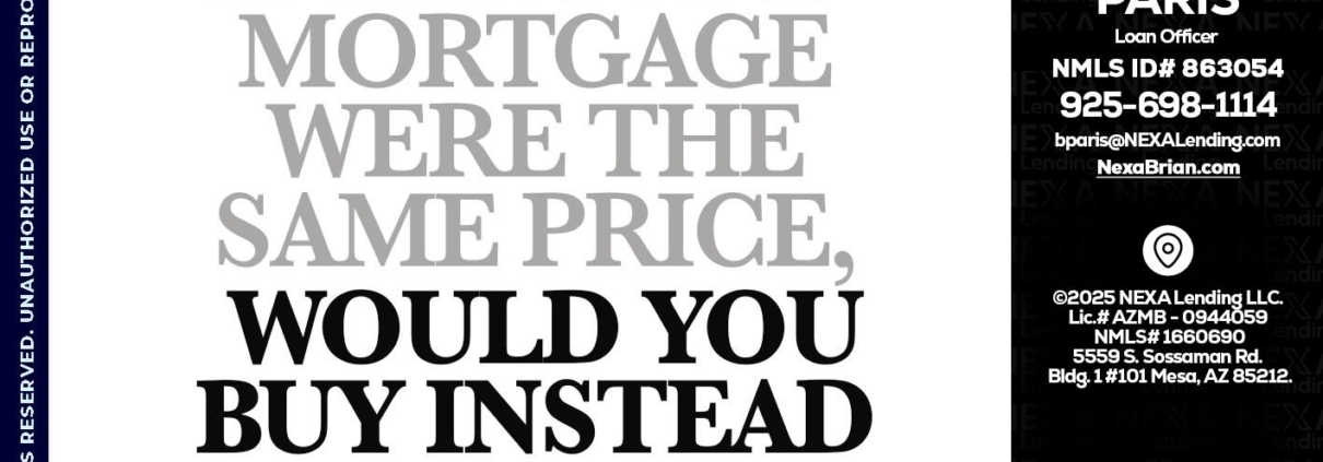 Hi, my name is Brian Paris. I’m a Loan Officer with NEXA Mortgage LLC., offering personalized mortgage solutions, fast customized quotes, great rates and service with integrity.