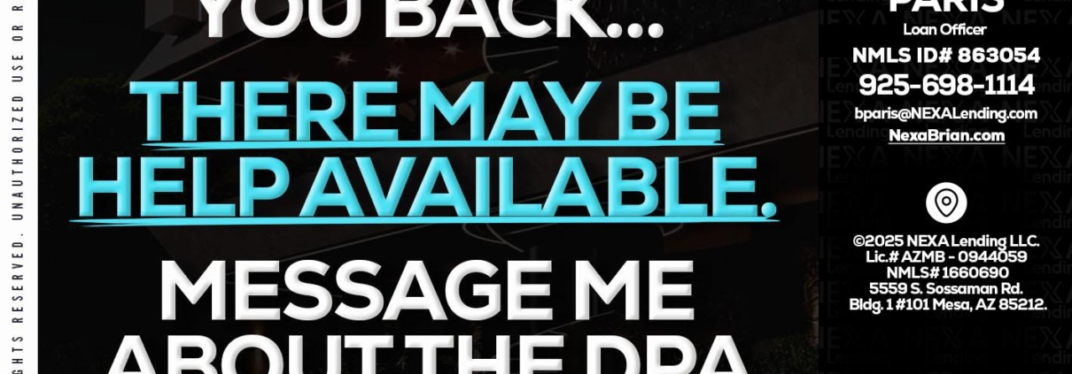 Hi, my name is Brian Paris. I’m a Loan Officer with NEXA Lending LLC., offering personalized mortgage solutions, fast customized quotes, great rates and service with integrity.