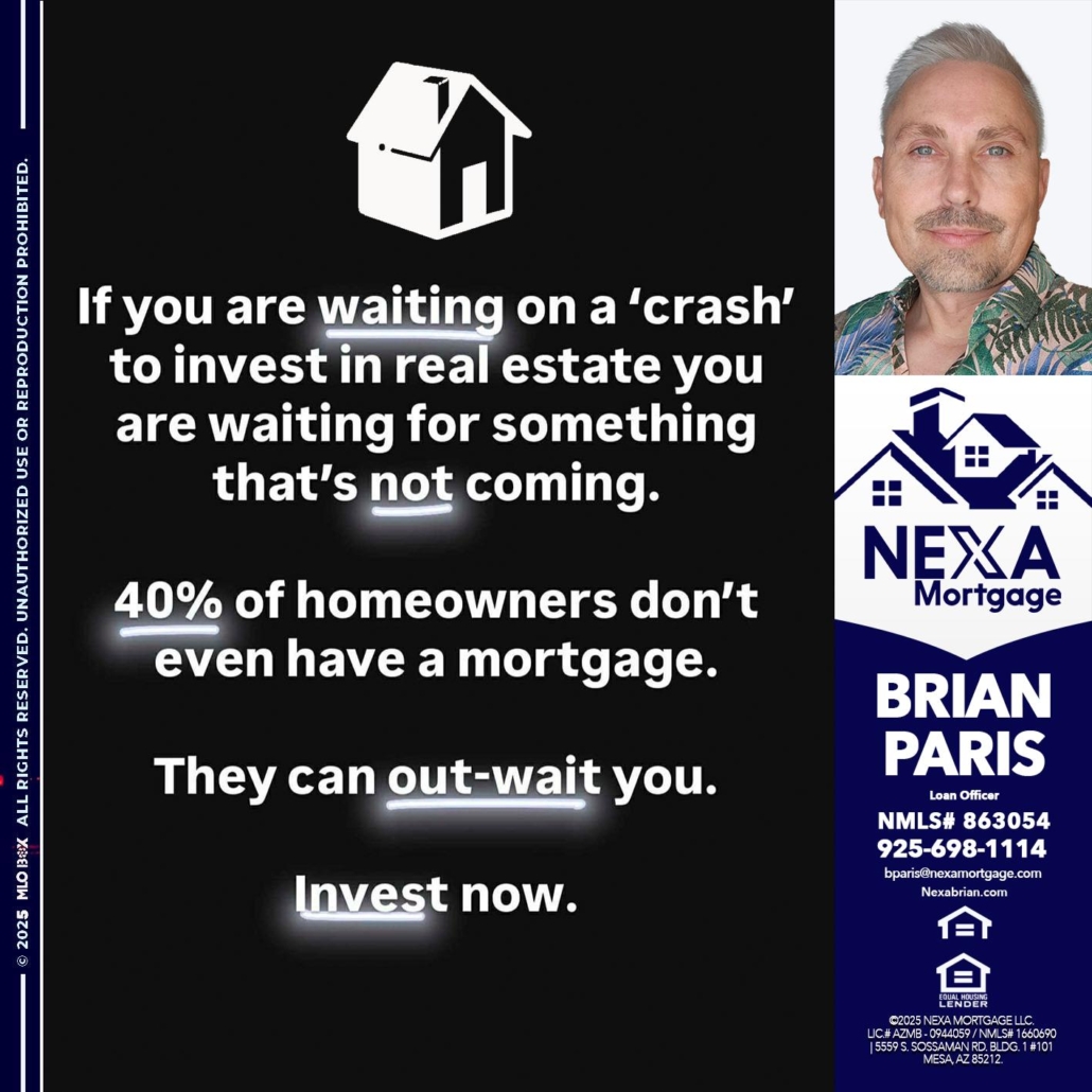 IF YOU ARE WAITING - Brian Paris -Loan OfficerHi, my name is Brian Paris. I’m a Loan Officer with NEXA Mortgage LLC., offering personalized mortgage solutions, fast customized quotes, great rates and service with integrity.