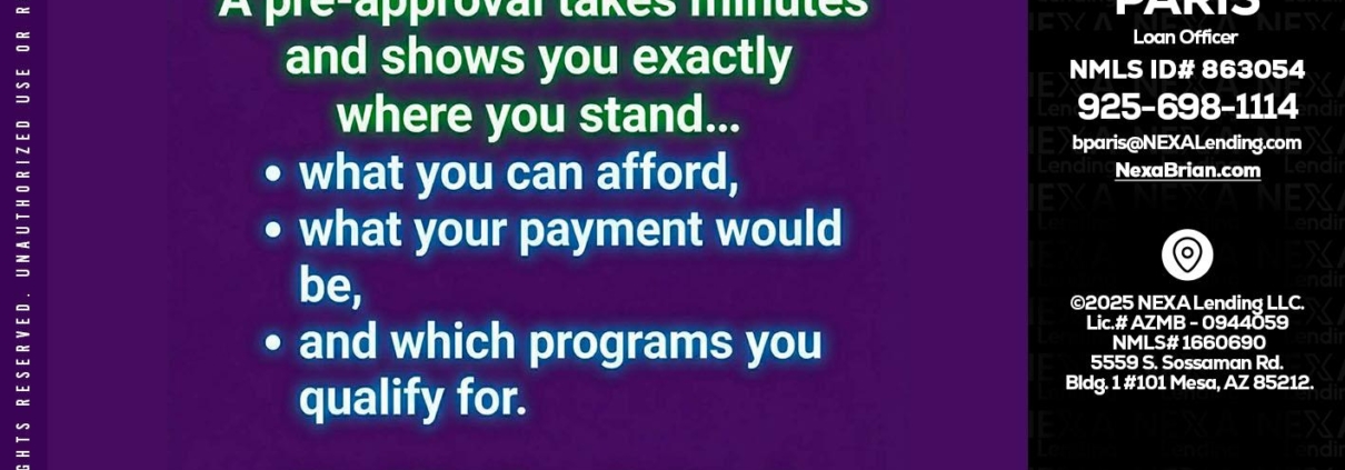 Hi, my name is Brian Paris. I’m a Loan Officer with NEXA Lending LLC., offering personalized mortgage solutions, fast customized quotes, great rates and service with integrity.