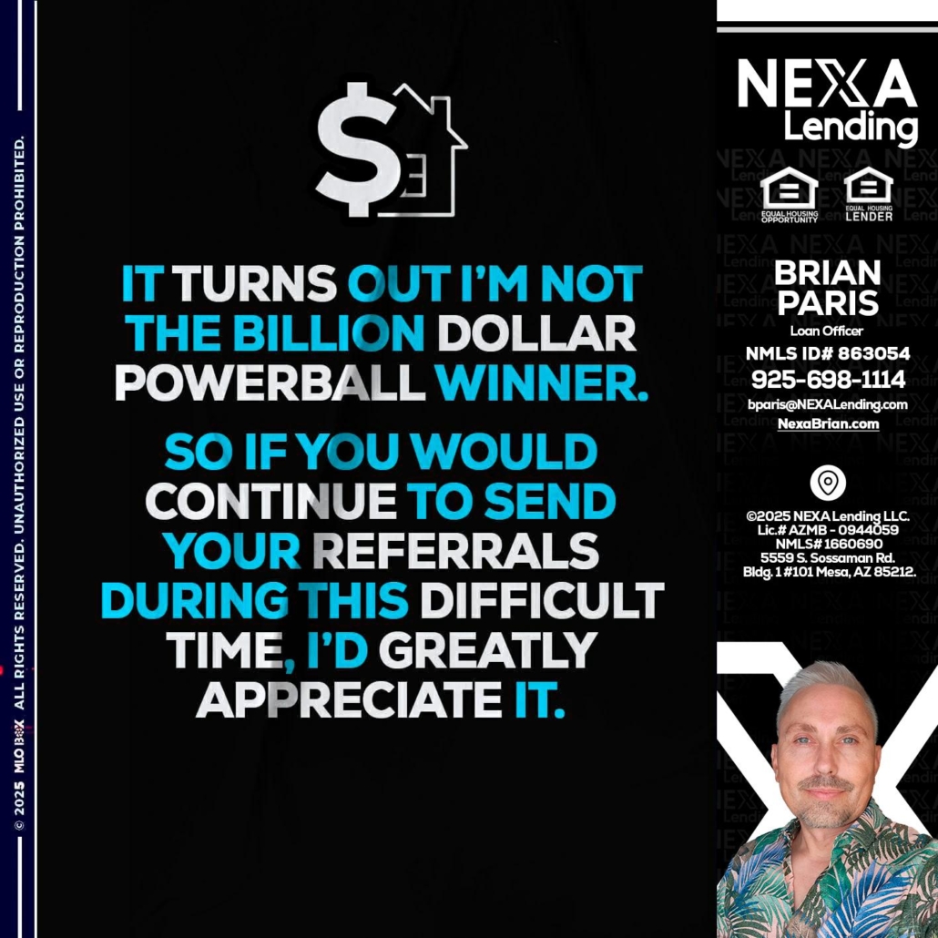 IT TURNS - Brian Paris -Loan OfficerHi, my name is Brian Paris. I’m a Loan Officer with NEXA Lending LLC., offering personalized mortgage solutions, fast customized quotes, great rates and service with integrity.
