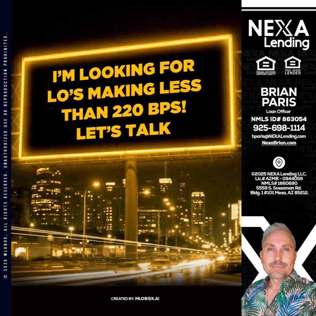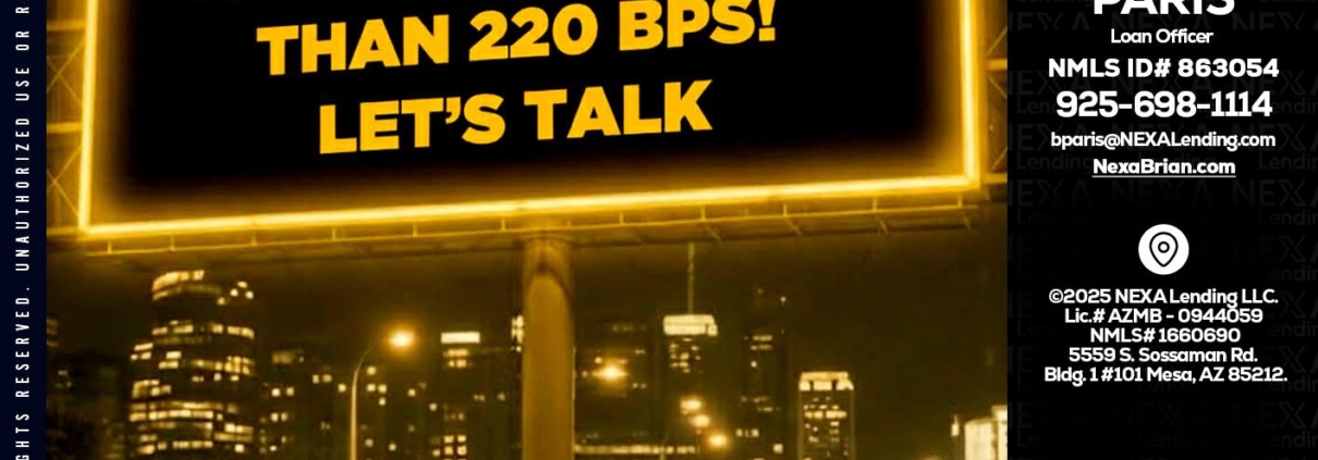 Hi, my name is Brian Paris. I’m a Loan Officer with NEXA Lending LLC., offering personalized mortgage solutions, fast customized quotes, great rates and service with integrity.
