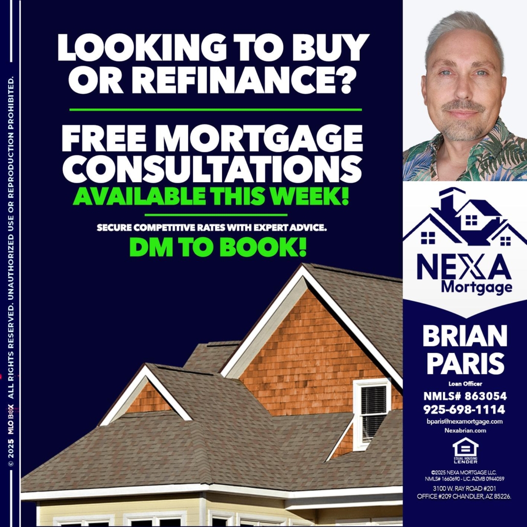 Hi, my name is Brian Paris. I’m a Loan Officer with NEXA Mortgage LLC., offering personalized mortgage solutions, fast customized quotes, great rates and service with integrity.