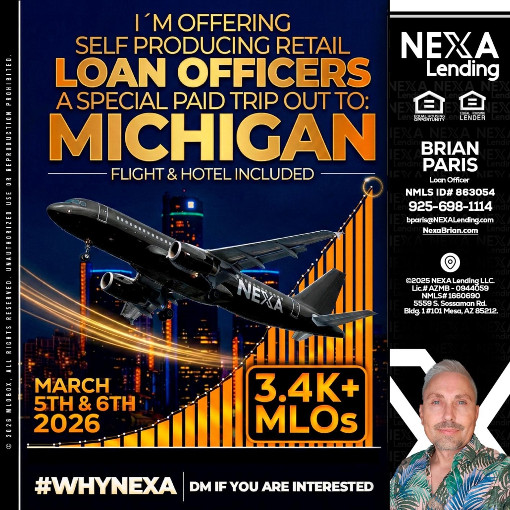 MICHIGAN - Brian Paris -Loan OfficerHi, my name is Brian Paris. I’m a Loan Officer with NEXA Lending LLC., offering personalized mortgage solutions, fast customized quotes, great rates and service with integrity.