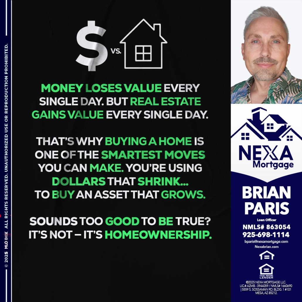 MONEY LOSES VALUE - Brian Paris -Loan OfficerHi, my name is Brian Paris. I’m a Loan Officer with NEXA Mortgage LLC., offering personalized mortgage solutions, fast customized quotes, great rates and service with integrity.