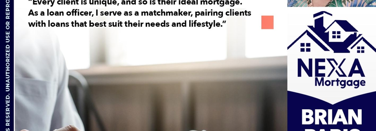 Hi, my name is Brian Paris. I’m a Loan Officer with NEXA Mortgage LLC., offering personalized mortgage solutions, fast customized quotes, great rates and service with integrity.
