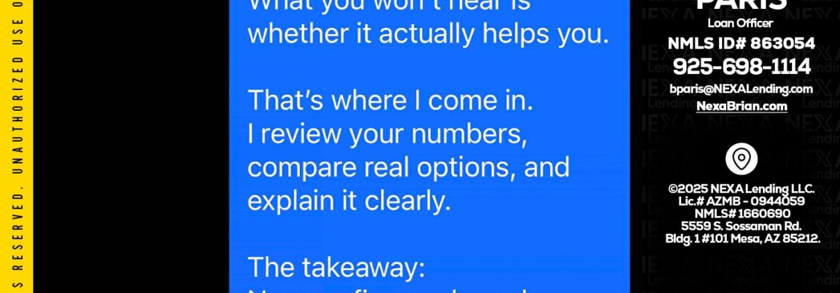 Hi, my name is Brian Paris. I’m a Loan Officer with NEXA Lending LLC., offering personalized mortgage solutions, fast customized quotes, great rates and service with integrity.