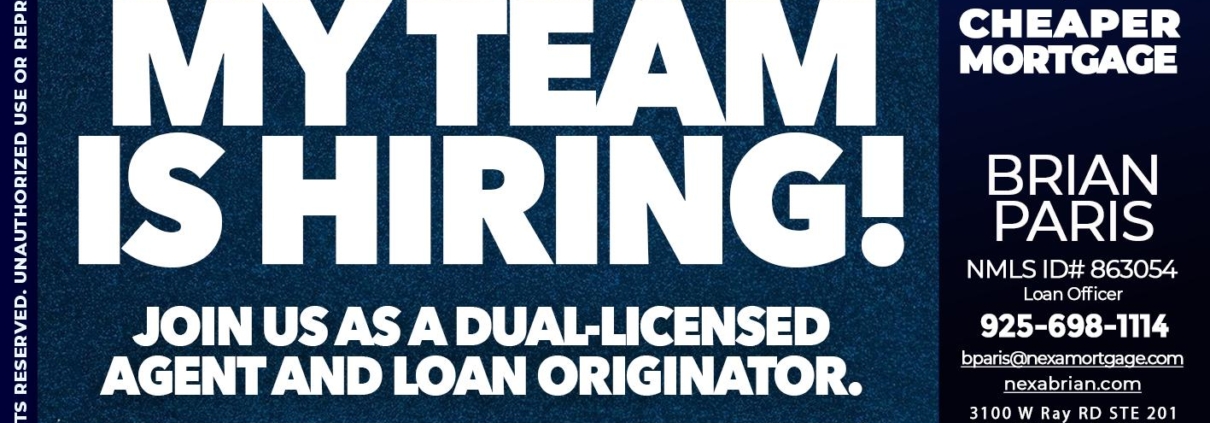 Hi, my name is Brian Paris. I’m a Loan Officer with NEXA Mortgage LLC., offering personalized mortgage solutions, fast customized quotes, great rates and service with integrity.