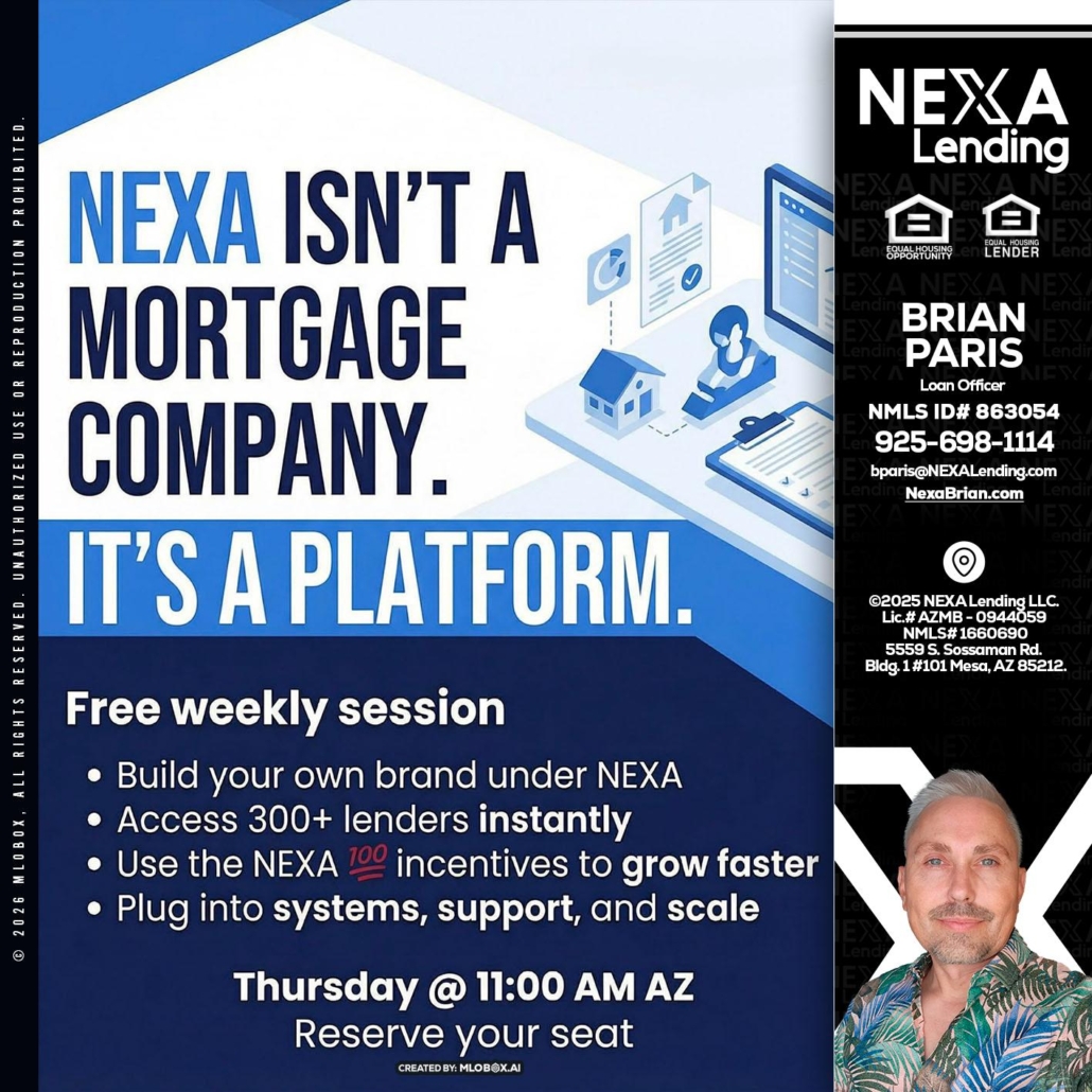 NEXA ISNT - Brian Paris -Loan OfficerHi, my name is Brian Paris. I’m a Loan Officer with NEXA Lending LLC., offering personalized mortgage solutions, fast customized quotes, great rates and service with integrity.