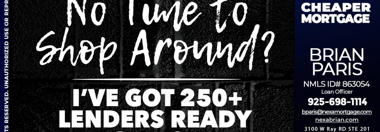 NI TIME TO SHOP AROUND - Brian Paris -Loan OfficerHi, my name is Brian Paris. I’m a Loan Officer with NEXA Mortgage LLC., offering personalized mortgage solutions, fast customized quotes, great rates and service with integrity.