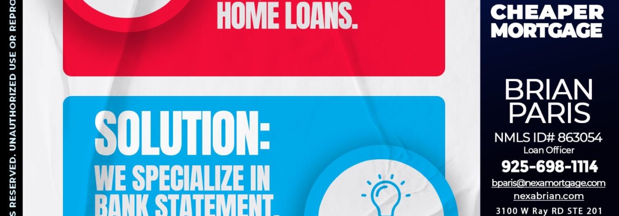 Hi, my name is Brian Paris. I’m a Loan Officer with NEXA Mortgage LLC., offering personalized mortgage solutions, fast customized quotes, great rates and service with integrity.