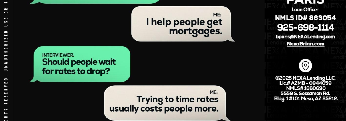 Hi, my name is Brian Paris. I’m a Loan Officer with NEXA Lending LLC., offering personalized mortgage solutions, fast customized quotes, great rates and service with integrity.