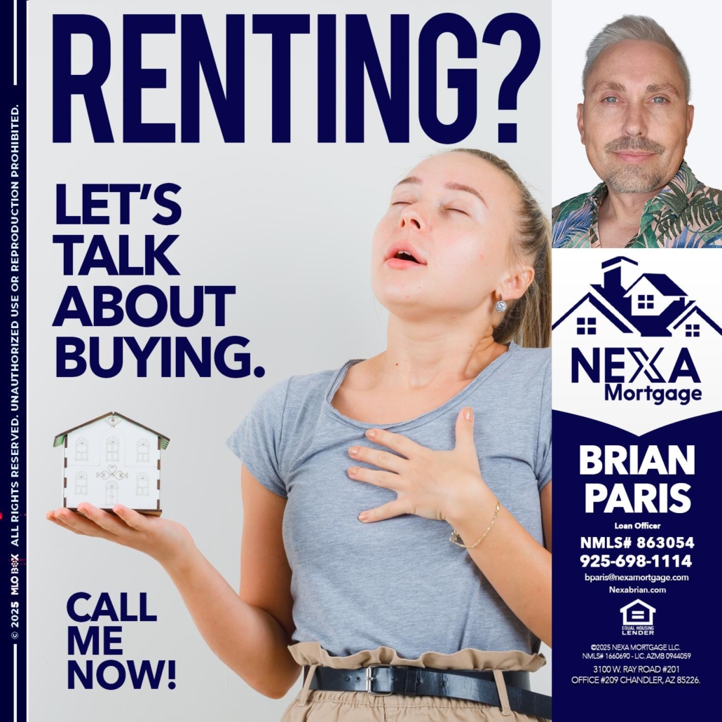 Hi, my name is Brian Paris. I’m a Loan Officer with NEXA Mortgage LLC., offering personalized mortgage solutions, fast customized quotes, great rates and service with integrity.