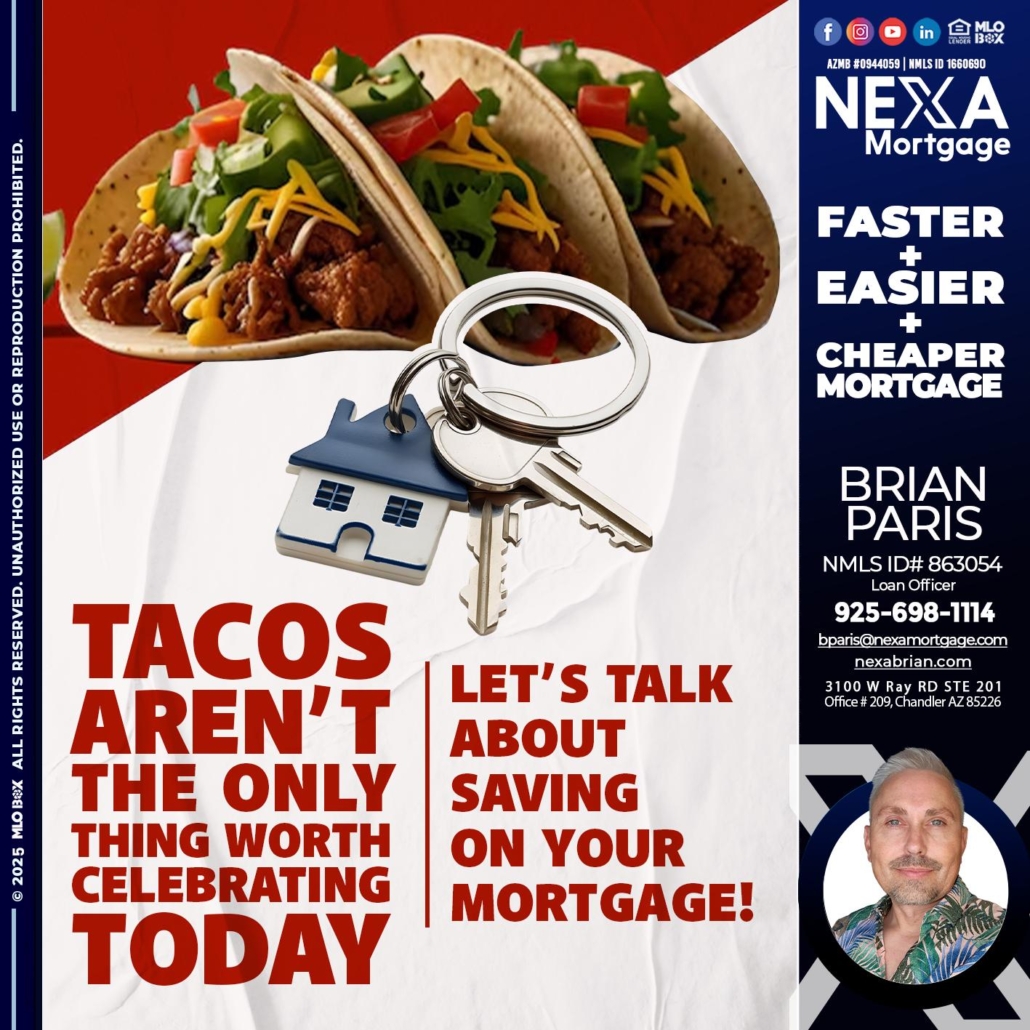Hi, my name is Brian Paris. I’m a Loan Officer with NEXA Mortgage LLC., offering personalized mortgage solutions, fast customized quotes, great rates and service with integrity.