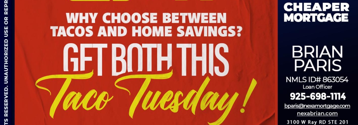 TACO TUESDAY - Brian Paris -Loan OfficerHi, my name is Brian Paris. I’m a Loan Officer with NEXA Mortgage LLC., offering personalized mortgage solutions, fast customized quotes, great rates and service with integrity.