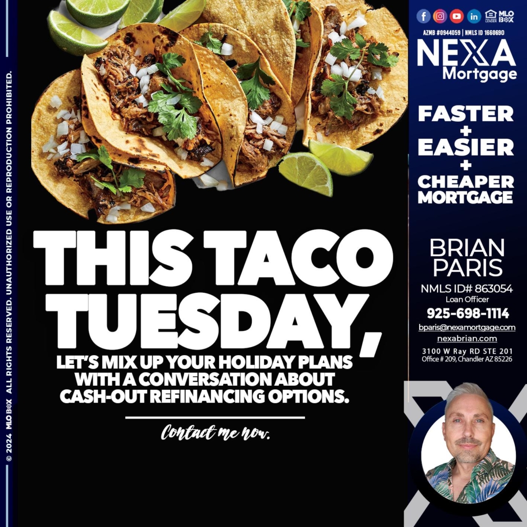 Hi, my name is Brian Paris. I’m a Loan Officer with NEXA Mortgage LLC., offering personalized mortgage solutions, fast customized quotes, great rates and service with integrity.