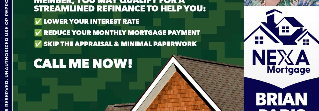 Hi, my name is Brian Paris. I’m a Loan Officer with NEXA Mortgage LLC., offering personalized mortgage solutions, fast customized quotes, great rates and service with integrity.