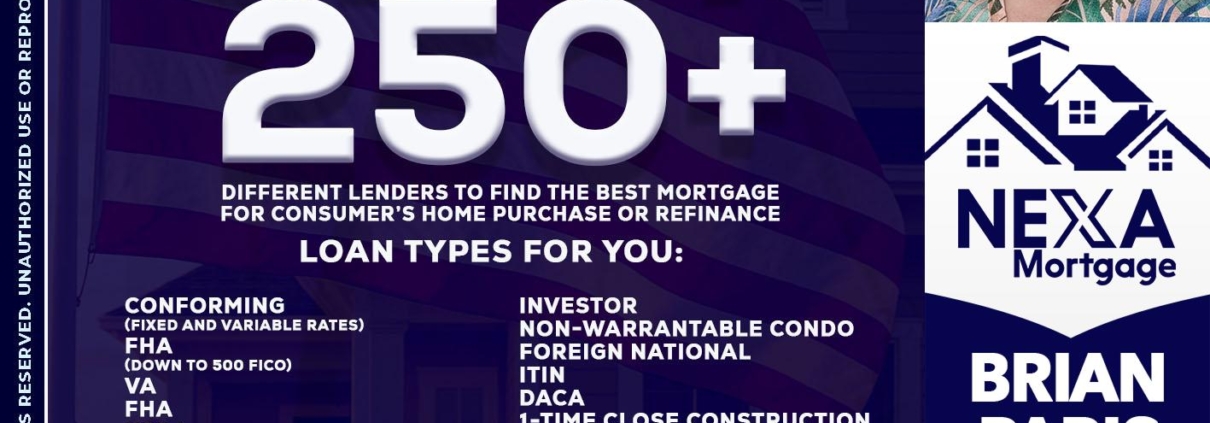 Hi, my name is Brian Paris. I’m a Loan Officer with NEXA Mortgage LLC., offering personalized mortgage solutions, fast customized quotes, great rates and service with integrity.