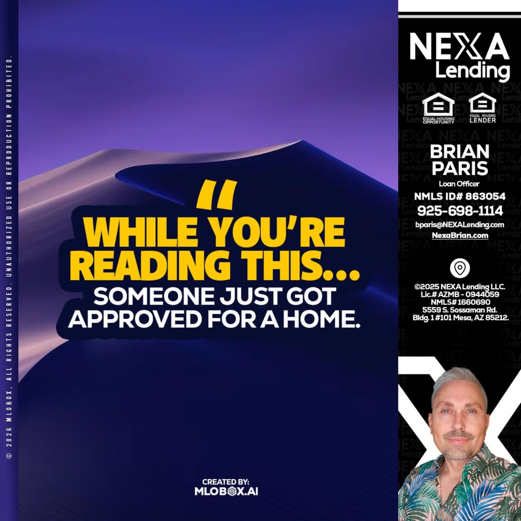 Hi, my name is Brian Paris. I’m a Loan Officer with NEXA Lending LLC., offering personalized mortgage solutions, fast customized quotes, great rates and service with integrity.