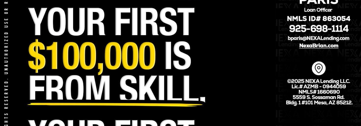 YOUR FIRST $1000 - Brian Paris -Loan OfficerHi, my name is Brian Paris. I’m a Loan Officer with NEXA Lending LLC., offering personalized mortgage solutions, fast customized quotes, great rates and service with integrity.